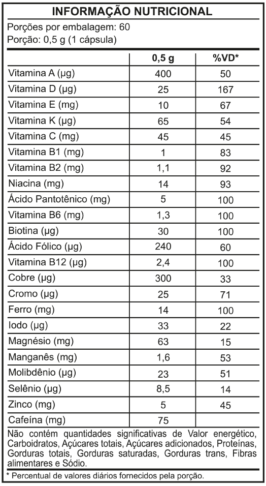 NIT VITA (com cafeína) – Multivitamínico Nutri In Time (60 cápsulas)